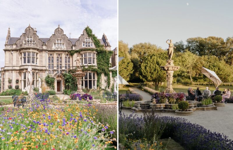LE: “Clevedon Hall had one of the very first Japanese Gardens in the country and in 1925 it had a Japanese tea house on the lake. Today, the property features acres of beautifully manicured gardens complete with a wildflower meadow, Hebe Fountain and a charming gazebo, offering the perfect backdrop for photos and outdoor ceremonies…”